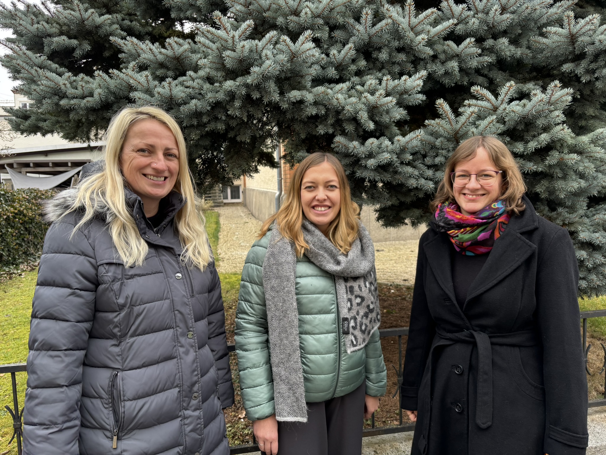 Mit Jänner 2026 verabschiedet sich Eva Lenger, Modellregionsmanagerin KEM Inn–Kobernaußerwald und Projektmitarbeiterin bei LEADER Mitten im Innviertel (Bildmitte), in ihre Babypause. Für die Zeit ihrer Abwesenheit übernimmt Ute Schneiderbauer (Bild rechts) ihre Aufgaben bei KEM und Johanna Beham (Bild links) wird sie bei LEADER vertreten.