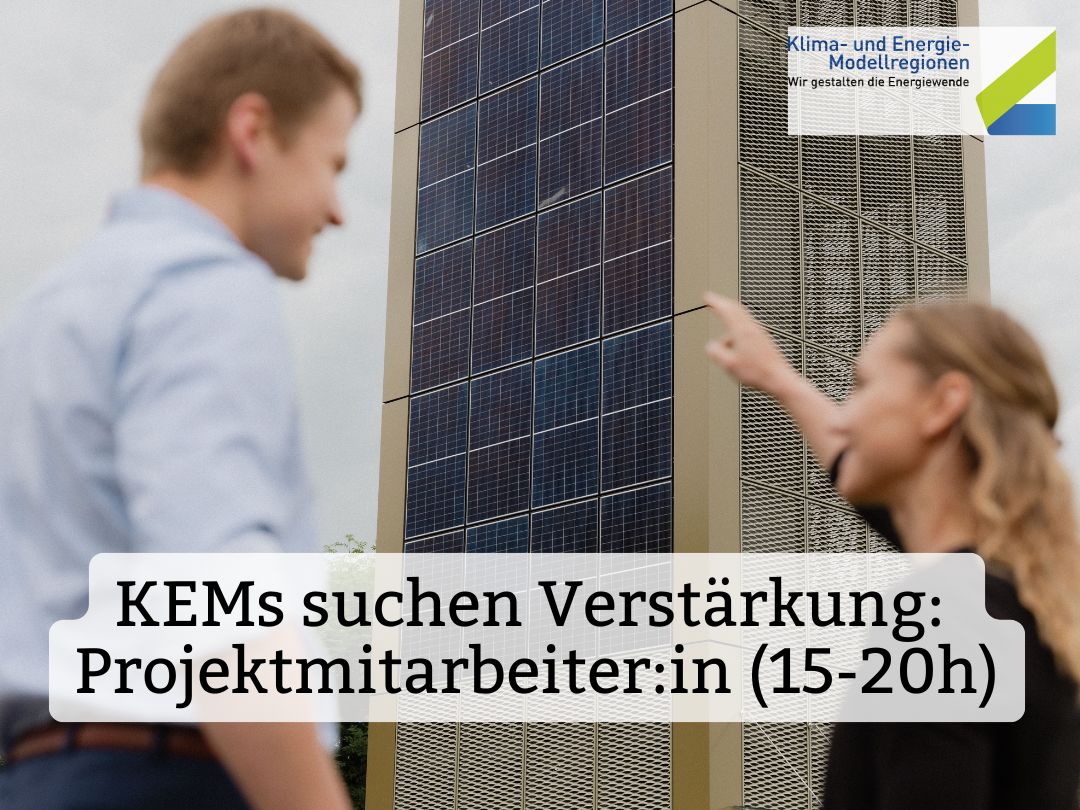 Ab 15. April suchen wir im KEM-Büro in Ried im Innkreis eine:n Projektmitarbeiter:in für 15-20 Wochenstunden im Bereich Energiemanagement in Gemeinden und zur Unterstützung der Modellregionsmanagerinnen.