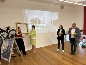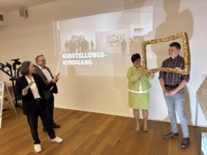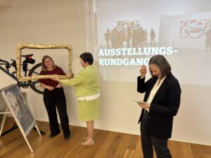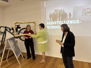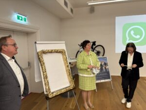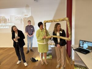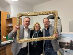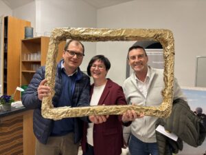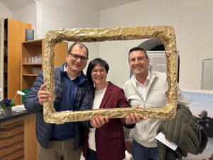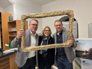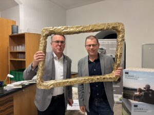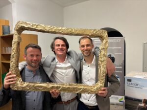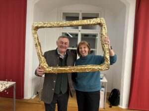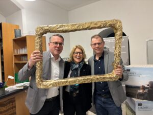 Ein goldener Bilderrahmen zog alle Blicke auf sich: Hinter diesem Rahmen stellten die Teammitglieder Projekte und Arbeitsschwerpunkte auf persönliche Art vor – die Bilder begannen sozusagen zu sprechen. Moderiert durch die Obleute Andrea Eckerstorfer (LEADER) und Gerhard Wipplinger (KEM) wurde damit in kurzer Zeit ein abwechslungsreicher Überblick über aktuelle Tätigkeiten und künftige Vorhaben präsentiert.