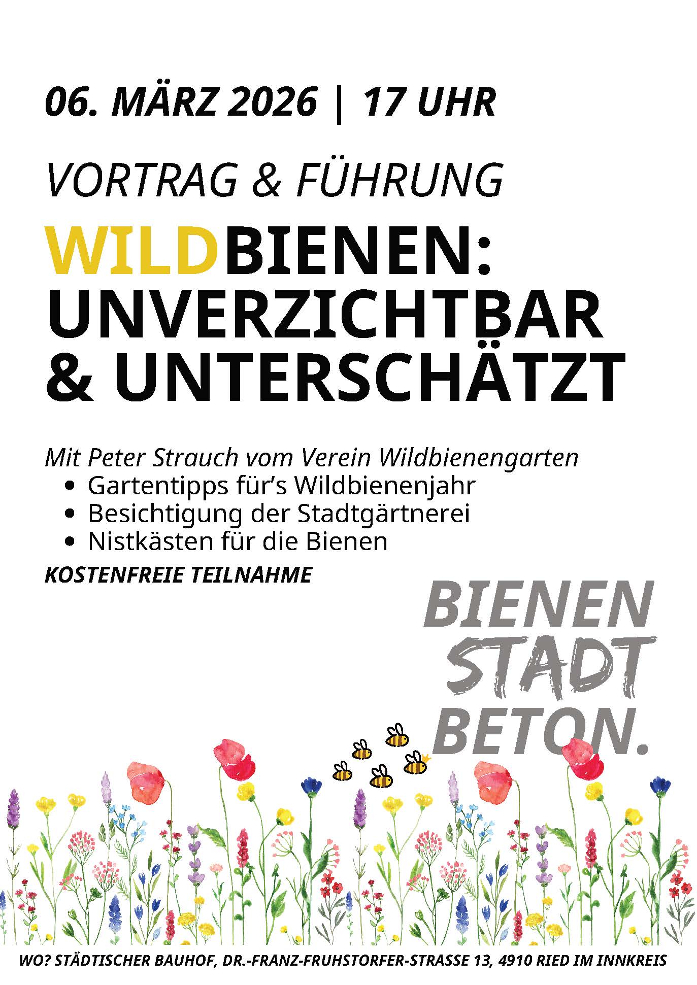 Die Stadtgemeinde Ried im Innkreis lädt am 06. März herzlich um 17 Uhr zu einem spannenden Nachmittag rund um das Thema Wildbiene ein.